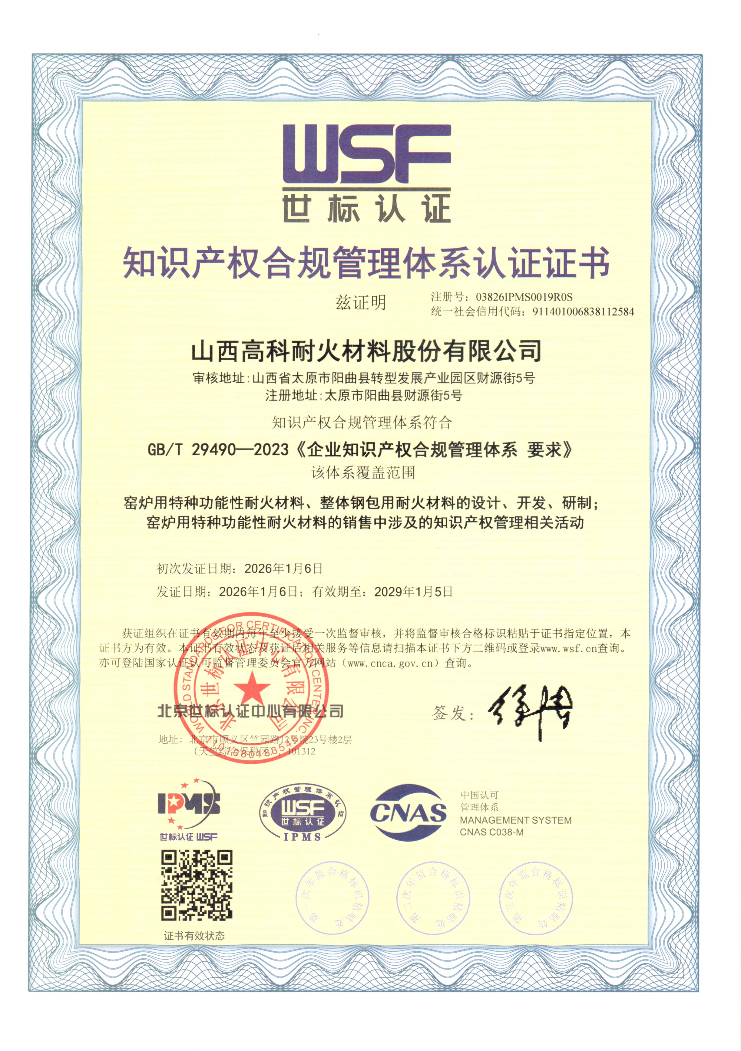 知识产权合规管理体系认证证书